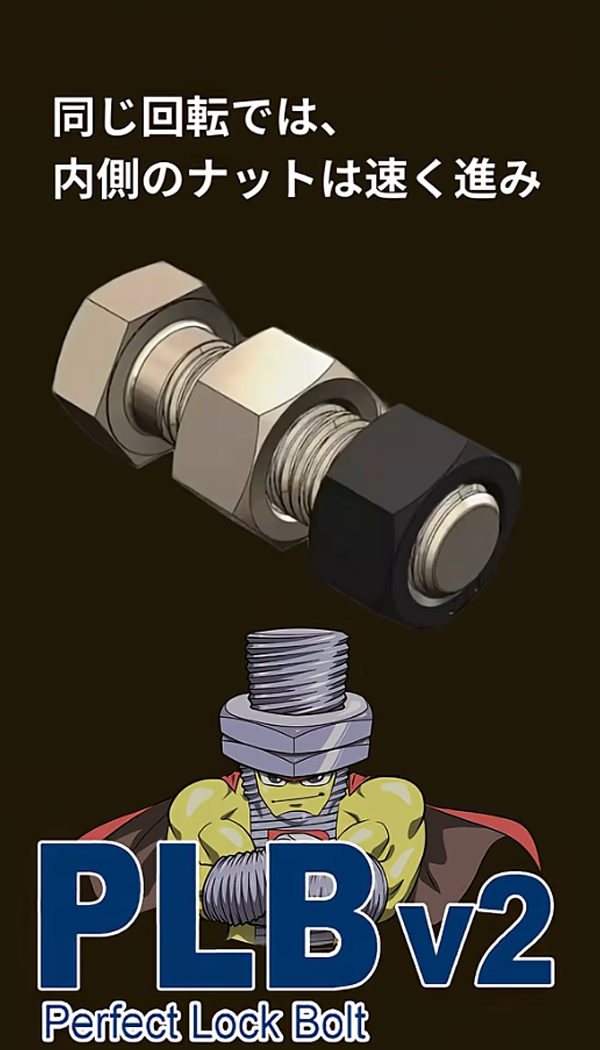PLB v2は1本のボルトに大小2種の異なるリードのねじ山(多条ねじ・一条ねじ)を有し、各々に対応する2種類のナットを装着できるようにしたねじ締結体です。